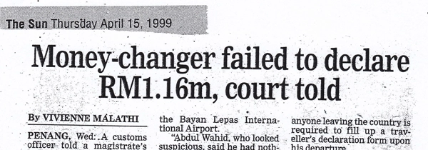PENANG, Wed: A customs officer told a magistrate's court here today that a money changer, Abdul Wahid Shaganbudeen, had failed to declare some RM1.16 million...