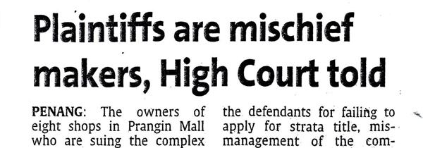 PENANG: The owners of eight shops in Prangin Mall who are suing the complex developer and management are busybodies and mischief makers, a High Court...
